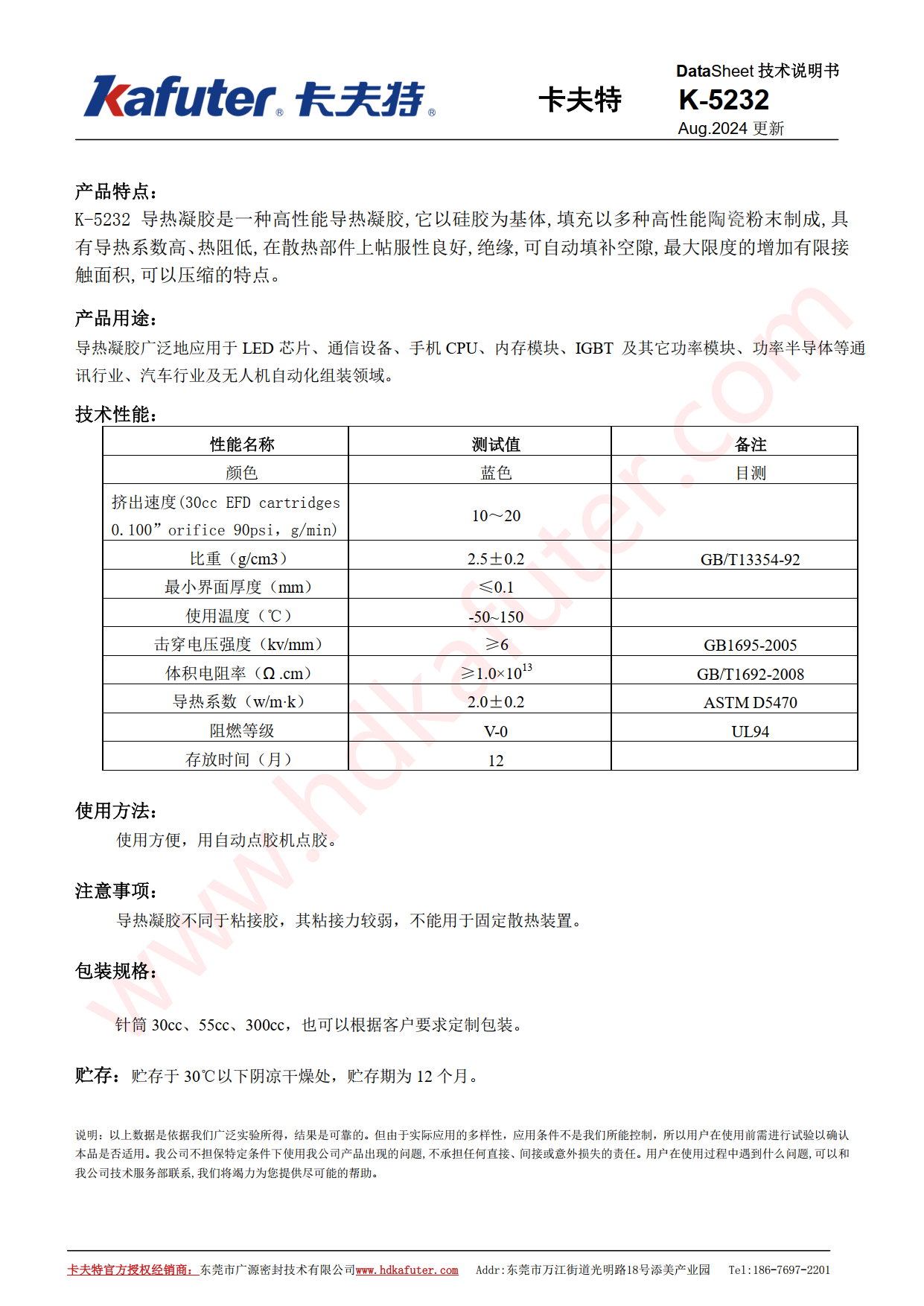 卡夫特K-5232导热凝胶型号: