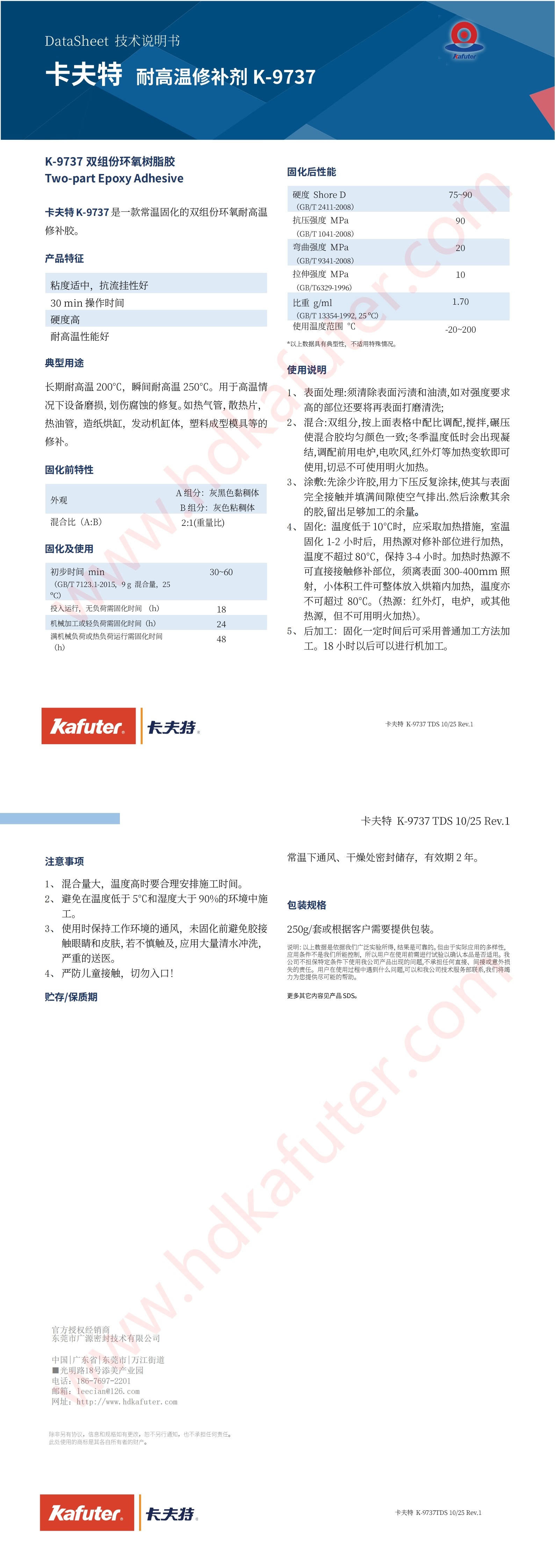 > 卡夫特K-9737耐高温修补剂 TDS产品技术说明书