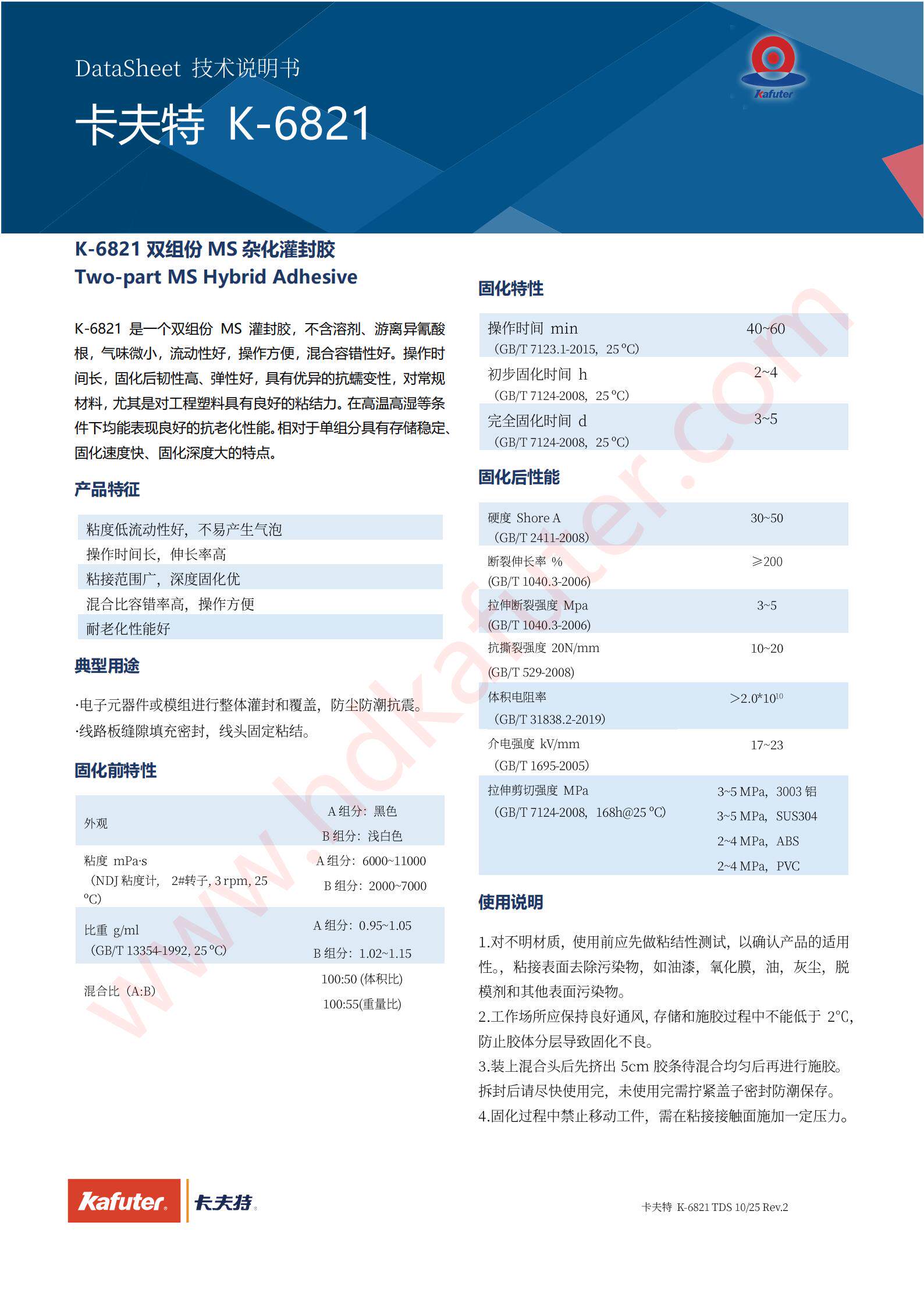 卡夫特K-6821双组份MS杂化灌封胶型号: