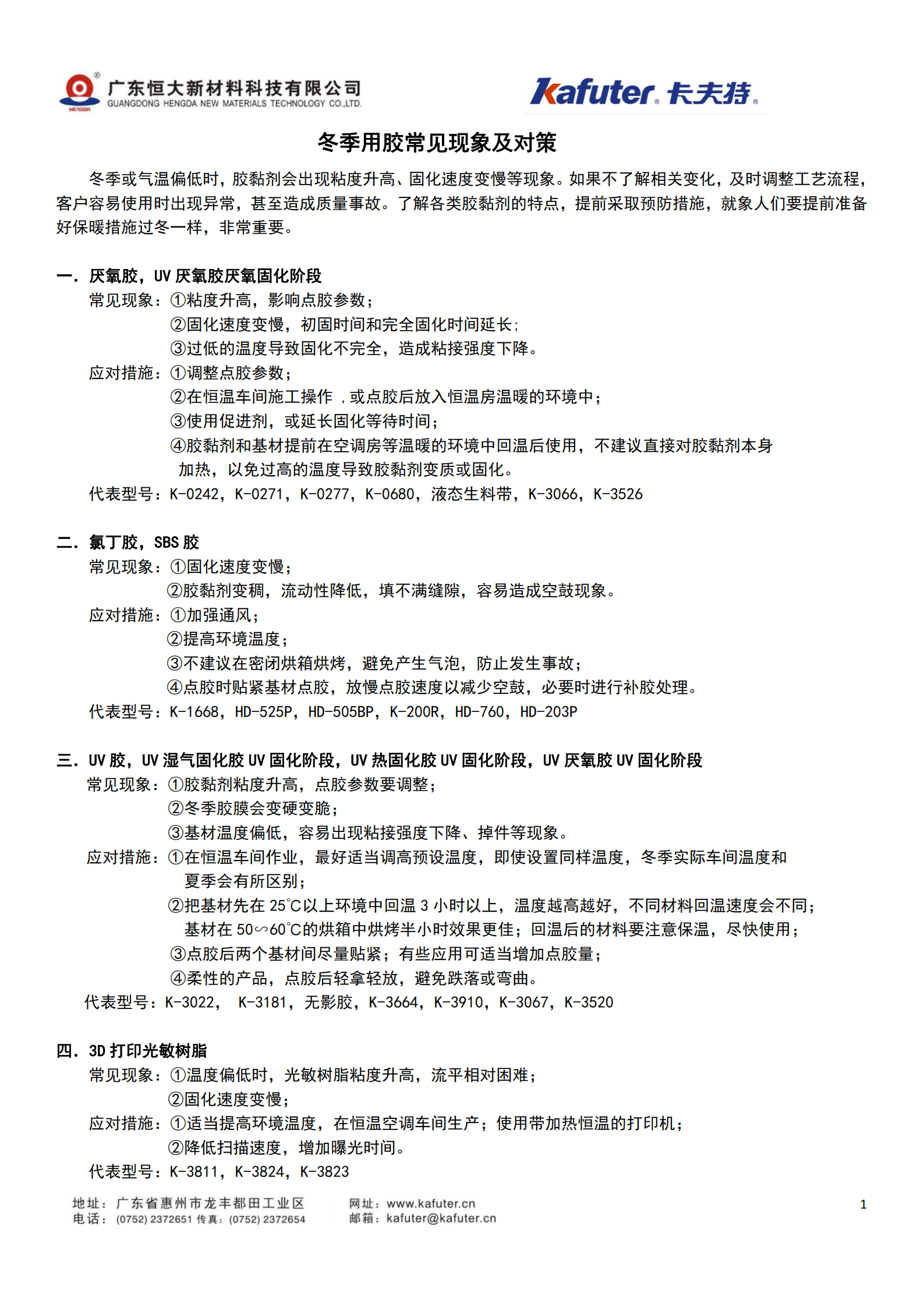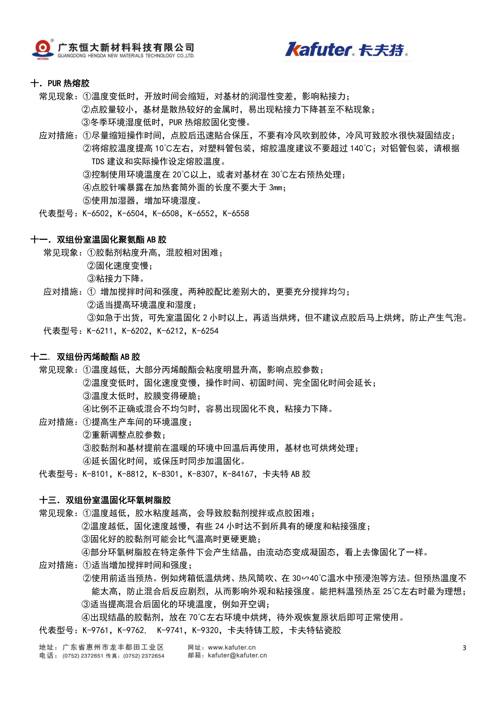 冬季或气温偏低时,胶黏剂会出现粘度升高、固化速度变慢等现象。如果不了解相关变化,及时调整工艺流程客户容易使用时出现异常,甚至造成质量事故。了解各类胶黏剂的特点,提前采取预防措施,就象人们要提前准备好保暖措施过冬一样,非常重要。